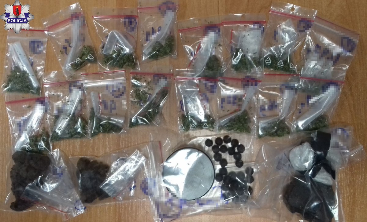 W piątkowy wieczór łukowscy kryminalni dowiedzieli się, że „na mieście” jest nastolatek, który ma ze sobą narkotyki, że może nimi handlować. Patrolując ulice miasta policjanci zauważyli opisanego nastolatka w pobliżu jednego z osiedli mieszkaniowych. Kontrolowany przez funkcjonariuszy 15-latek z gminy Łuków mówił, że nie ma nic wspólnego z narkotykami. Kryminalni nie uwierzyli w jego zapewnienia i sprawdzając jego odzież znaleźli przy nim plastikowy pojemnik w którym było kilkadziesiąt kulek zrobionych z brązowej substancji, a także foliowy woreczek z zielonym suszem. Po sprawdzeniu okazało się, że kulki były zrobione z ponad 25 gramów haszyszu, a w woreczku była marihuana.