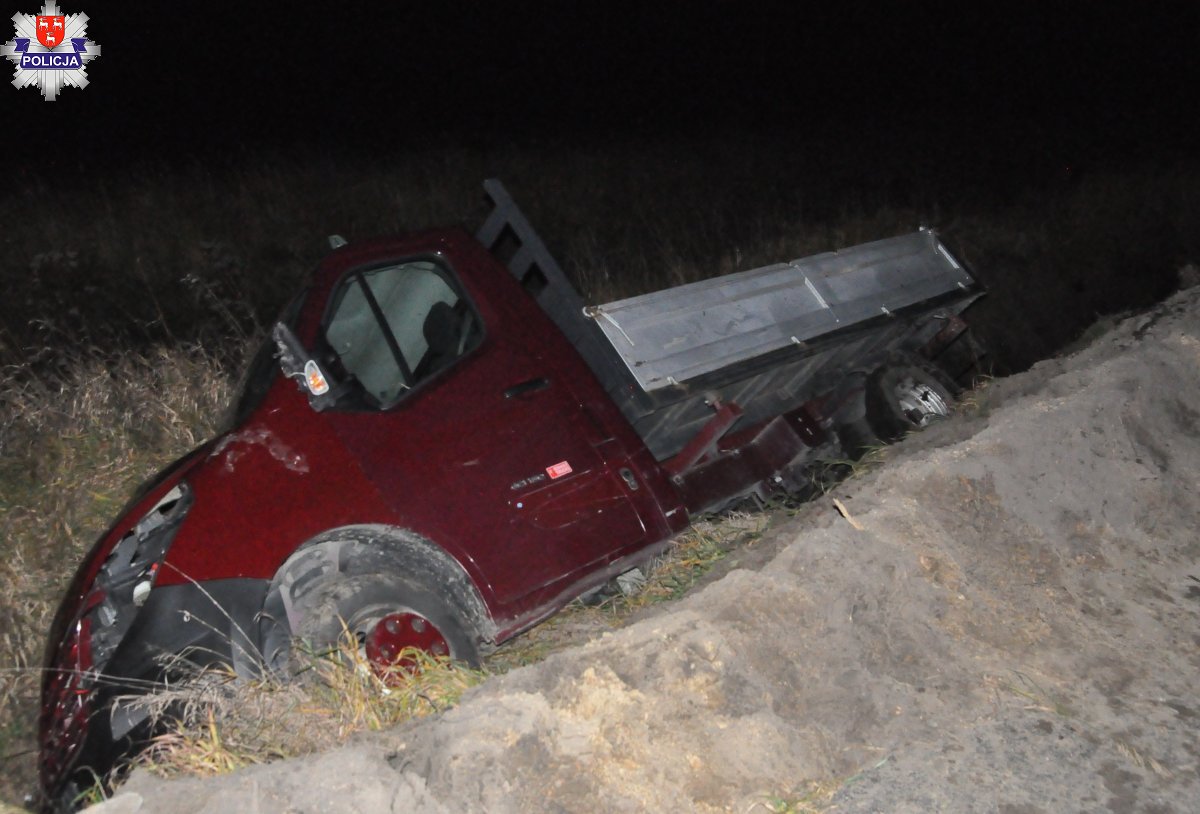 W sobotę późnym popołudniem łukowscy policjanci zostali powiadomieni o zdarzeniu drogowym, do jakiego doszło w Radoryżu Kościelnym. Mundurowi którzy przyjechali na miejsce ustalili, że kierujący samochodem marki Renault Master na łuku drogi zjechał z jezdni do przydrożnego rowu, gdzie auto przewróciło się na bok. W wyniku zdarzenia kierujący ciężarówką doznał obrażeń ciała i został przewieziony do szpitala. Na szczęście okazało się, że urazy jakich doznał nie zagrażają jego życiu.