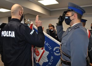 ,,Ja, obywatel Rzeczypospolitej Polskiej, świadom podejmowanych obowiązków policjanta, ślubuję: służyć wiernie Narodowi, chronić ustanowiony Konstytucją Rzeczypospolitej Polskiej porządek prawny, strzec bezpieczeństwa Państwa i jego obywateli, nawet z narażeniem życia...”. Od dzisiaj te słowa roty ślubowania będą dla nowo przyjętych policjantów jedną z najważniejszych życiowych dewiz.