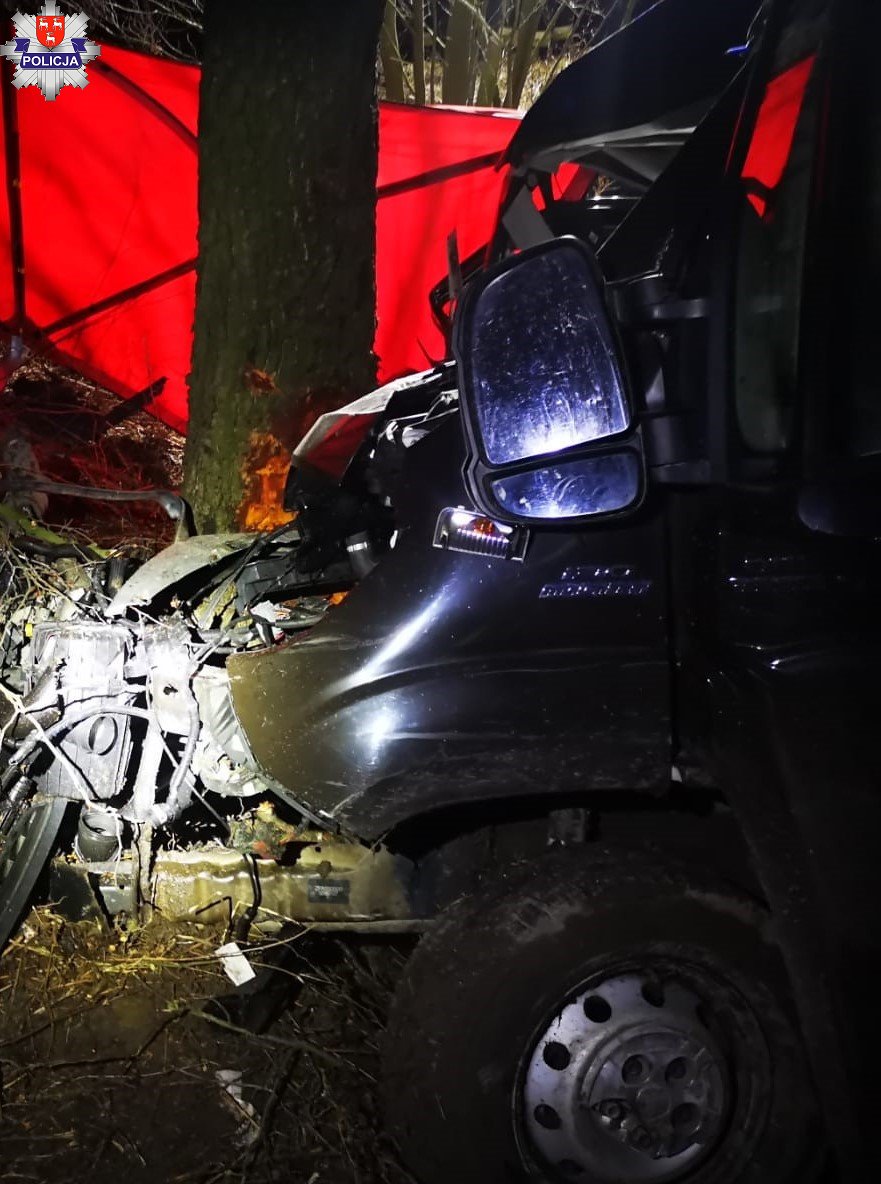 Do wypadku doszło wczoraj po godzinie 16 w miejscowości Poznań w gminie Serokomla. Ze wstępnych ustaleń pracujących na miejscu wypadku policjantów wynika, że kierujący samochodem marki Fiat Ducato na łuku drogi stracił panowanie nad pojazdem i po zjechaniu z jezdni uderzył w przydrożne drzewo. Niestety 38-latek z gminy Serokomla doznał poważnych obrażeń ciała i zmarł na miejscu wypadu.