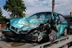 Do zderzenia pojazdów doszło wczoraj około godziny 15:30 na łuku drogi krajowej 63 w Gołaszynie. Kierujący samochodem daewoo lanos 63-letni Stanisław S. prawdopodobnie wskutek nadmiernej prędkości w pewnej chwili zjechał na lewy pas ruchu doprowadzając do czołowego zderzenia z jadącym z przeciwka samochodem dostawczym iveco. W wyniku zderzenia pojazdów obrażeń ciała doznał Stanisław S. oraz dwie kobiety w wieku 25 i 49 lat – pasażerki samochodu iveco. Starszej z nich udzielono pomocy medycznej i zwolniono do domu, natomiast młodsza pozostała na obserwacji w szpitalu. Stanisław S. doznał licznych oraz poważnych obrażeń i również przebywa w szpitalu.