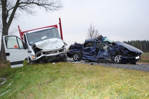 Kilkanaście minut przed godz. 15: 00 w miejscowości Gołaszyn na łuku drogi zderzyły się czołowo dwa samochody. Na miejscu mundurowi wstępnie ustalili, że 34-latek jechał BMW w kierunku Łukowa, natomiast 50-latek jechał IVECO DAILY w kierunku Siedlec. Ze wstępnych ustaleń wynika, że kierujący BMW na skutek nadmiernej prędkości stracił panowanie nad pojazdem w wyniku, czego doszło do zderzenia.