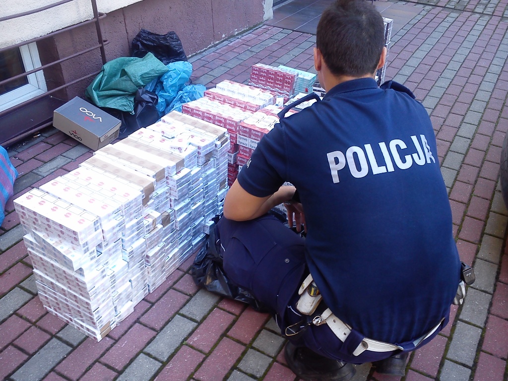 Łukowscy policjanci zabezpieczyli blisko 3 tysiące paczek papierosów i ponad 32 litry alkoholu bez polskich znaków skarbowych akcyzy. Nielegalny towar znajdował się w peugeocie, którym poruszał się 39-letni obywatel Azerbejdżanu mieszkający na terenie gminy Łuków.