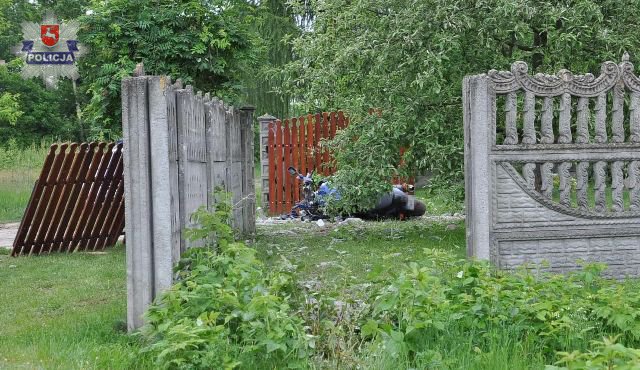 W niedzielę rano łukowscy policjanci zostali powiadomieni o wypadku drogowym, do jakiego doszło w miejscowości Zimna Woda. Pierwsze ustalenia funkcjonariuszy wskazują, że kierujący motocyklem marki Suzuki 21-latek z gminy Krzywda kierując motocyklem marki Suzuki zjechał z jezdni i uderzył w betonowe przęsło ogrodzenia posesji a następnie w skrzydło bramy wjazdowej. Siła uderzenia motocykla była tak duża, że betonowe przęsło ogrodzenia zostało całkowicie zniszczone, a zawiasy skrzydła bramy wjazdowej zostały złamane.