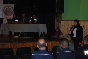Na wstępie Komendant przywitał wszystkich gości i przedstawił program spotkania oraz cel i istotę debat społecznych. Komendant wyraził podziękowanie wszystkim zebranym, że tak licznie odpowiedzieli na zaproszenie do wzięcia udziału we wspólnym spotkaniu i dyskusji. Po tym wystąpieniu kom. Dariusz Zdanikowski przedstawił prezentację na temat aktualnego stanu bezpieczeństwa na terenie gminy Trzebieszów.