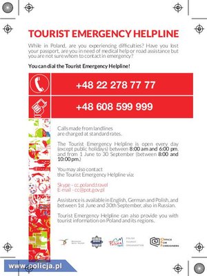 Telefon Bezpieczeństwa dla turystów zagranicznych.