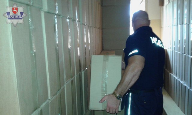 Tuż przed godziną 2.00 łukowscy policjanci patrolujący ulice miasta zatrzymali do kontroli drogowej samochód marki Renault Master i samochód marki Volkswagen LT. Pojazdami tymi kierowali 31 i 25-letni mieszkańcy województwa mazowieckiego. Policjanci sprawdzając przewożony na skrzyniach ładunkowych towar stwierdzili, że w tekturowych pudłach znajdują się paczki papierosów bez polskich znaków akcyzy skarbowej. Po przeliczeniu okazało się, że mężczyźni przewozili 178 500 paczek papierosów bez polskich znaków akcyzy skarbowej. Ze wstępnych wyliczeń wynika, że w przypadku wprowadzenia na rynek takiej ilości papierosów Skarb Państwa straciłby blisko 3 000 000 zł.