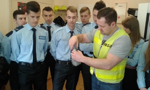 technik kryminalistyki i uczniowie klasy policyjnej -