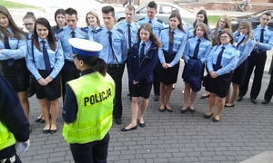 policjantka ruchu drogowego i uczniowie klasy policyjnej