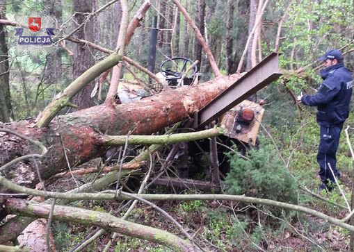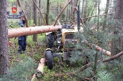 Jak ustalili policjanci z Komisariatu w Adamowie, pokrzywdzony mężczyzna pracował w lesie ze swoją rodziną. Ze wstępnych ustaleń wynika, że ścinane drzewo osunęło się na ciągnik rolniczy. W tym czasie 63-latek znajdował się na pojeździe. Opadające drzewo uderzyło mężczyznę. Najbliżsi natychmiast wezwali pomoc.