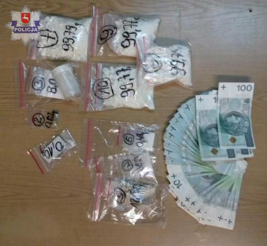 Ponad 400 gram amfetaminy i 13 gram mefedronu zabezpieczyli wczoraj łukowscy kryminalni. Nielegalne środki psychotropowe schowane były w zamrażarce. Policjanci zatrzymali dwoje 41-latków i zabezpieczyli 8 tysięcy zł. Zatrzymany mężczyzna poszukiwany był listami gończymi.