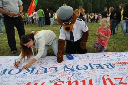 Uczestnicy pikniku, a w szczególności pielgrzymi otrzymali od policjantów okolicznościowe upominki. Policjanci przekazywali podstawowe zasady dotyczące bezpieczeństwa pielgrzymów i wolontariuszy. Mundurowi rozmawiając z gośćmi informowali też o specyfice swojej służby, prezentowali możliwości policyjnego sprzętu. Tradycyjnie, największe zainteresowanie wzbudziła maskotka łukowskich policjantów. Nie tylko dzieci chciały mieć pamiątkową fotkę z komisarzem Misiem.