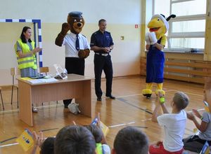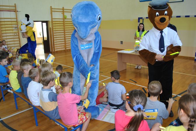 Do działań policjantów dołączyli się przedstawiciele firmy PSB. Maskotki komisarz Miś, Mrówka oraz Delfin, razem z policjantem tłumaczyli dzieciom jak prawidłowo przechodzić przez jezdnię, jak zachowywać się w pobliżu drogi, a także jak bezpiecznie podróżować samochodem.