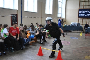 W trakcie imprezy uczestnicy rywalizowali w kilku konkurencjach. Gimnazjaliści rozwiązywali test wiedzy prewencyjnej i praktyczny test dotyczący zasad udzielania pierwszej pomocy medycznej. Zawodnicy mieli do pokonania tor rowerowy oraz policyjny tor przeszkód. Została również przygotowana konkurencja dla opiekunów, która wzbudziła ogromny aplauz wśród młodzieży. Tym razem to właśnie oni „udzielali” pierwszej pomocy rannym uczniom.