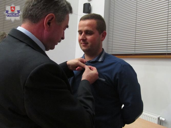 Między innymi naszemu koledze, który jako honorowy krwiodawca oddał ponad 20 litrów krwi nadano Złotą Odznaką „Zasłużonego Honorowego Dawcy Krwi”. W łukowskiej komendzie oprócz Radka jest jeszcze kilkunastu Honorowych Dawców Krwi. Nasi koledzy wielokrotnie udowodnili, że są w stanie bezinteresownie pomagać. Oddawali krew w nagłych wypadkach, takich jak np. pilna potrzeba przetoczenia krwi o konkretnej grupie, niezbędnej do przeprowadzenia zabiegu operacyjnego. Niezwłocznie reagowali także na prośby oddania krwi dla policjantów i członków ich rodzin.