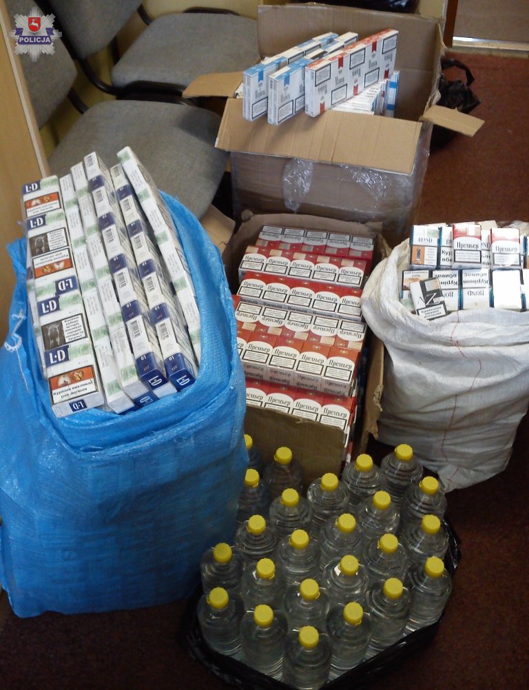 Łukowscy kryminalni wspólnie z celnikami w trakcie kontroli dwóch pojazdów ujawnili ponad 2400 paczek papierosów oraz 40 butelek alkoholu bez polskich znaków akcyzy. Kontrabanda należała do 41-letniego mieszkańca gminy Łuków i 34-letniego mieszkańca Łukowa. Mężczyznom grozi kara do 2 lat więzienia, wysoka grzywna oraz przepadek nielegalnego towaru.