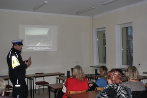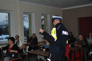 Policjanci mówili też, że wiele osób wciąż nie zdaje sobie sprawy z tego, że brak elementów odblaskowych zagraża ich bezpieczeństwu na drodze. Rowerzysta bądź pieszy poruszając się po zmroku, na nieoświetlonym odcinku drogi, dodatkowo podczas opadów deszczu lub śniegu powoduje duże zagrożenie. Ubrany w ciemną odzież, bez odblasku jest widziany przez kierującego pojazdem z odległości około 40 metrów. Natomiast osoba piesza, mająca na sobie elementy odblaskowe, staje się widoczna nawet z odległości 150 metrów. Te dodatkowe metry pozwalają kierowcy wyhamować i bezpiecznie ominąć pieszego. Dlatego bardzo ważnym jest noszenie odblasków. Na zakończenie, uczestnicy każdego ze spotkań otrzymali od policjantów elementy odblaskowe. Mundurowi apelowali by nie leżały one w domach, zachęcali do ich używania. Zatem stosujmy się do przepisów, chrońmy nasze życie i zdrowie, po prostu nośmy odblaski!