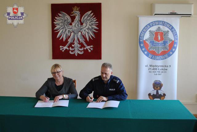 Wczoraj Komendant Powiatowy Policji w Łukowie insp. Ryszard Szklarz i Dyrektor Zespołu Szkół im. Władysława Tatarkiewicza w Radoryżu Smolanym Pani Marianna Brzozowska-Skwarek podpisali porozumienie regulujące zasady współpracy pomiędzy łukowską jednostką i szkołą.