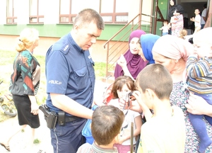 We wczorajszej imprezie uczestniczyli też łukowscy policjanci. Realizując założenia programu „Dzielnicowy bliżej nas” mundurowi rozmawiali o działaniach w sytuacji uzasadnionego podejrzenia działania sprawców z motywów rasistowskich, ksenofobicznych lub wrogości czy niechęci do danej grupy społecznej. Dzielnicowy przekazał informacje z zakresu ochrony praw człowieka i poruszył zagadnienia dotyczące rasizmu, ksenofobii oraz nietolerancji wobec cudzoziemców. Policjanci rozmawiali też o zagadnieniach dotyczących przeciwdziałaniu dyskryminacji, uświadomili dzieci i młodzież o konieczności właściwych zachowań wobec omawianych grup w zakresie równego traktowania.