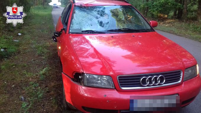 O dużym szczęściu mogą mówić małżonkowie z gminy Krzywda, którzy podróżując samochodem marki Audi zderzyli się z łosiem. Masywne zwierze poważnie uszkodziło samochód i omal nie wpadło do jego wnętrza. Na szczęście kierującej i pasażerowi auta nic się nie stało. Apelujemy o zachowanie szczególnej ostrożności podczas jazdy drogami biegnącymi w obszarach leśnych.