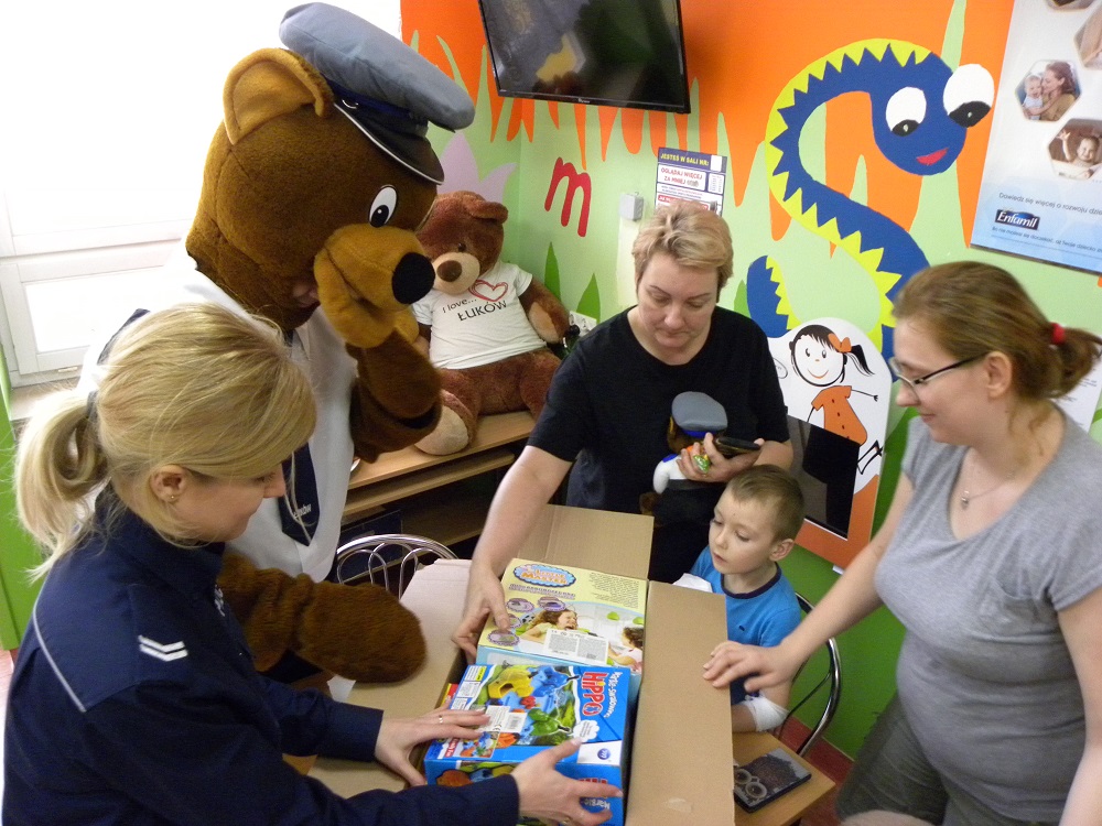 Maluchy otrzymały od policjantów świąteczne prezenty oraz maskotki małego komisarza Misia. Mundurowi przekazali też prezenty, które na stałe pozostaną na szpitalnym oddziale. Będą z nich mogli korzystać w przyszłości inni mali pacjenci.