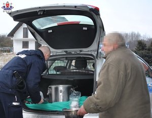 Jak co roku, gdy w naszym kraju następuje ochłodzenie i temperatury na zewnątrz, zwłaszcza w nocy spadają blisko zera lub poniżej, policjanci sprawdzają miejsca gdzie mogą przebywać osoby narażone na wychłodzenie. Razem z mundurowymi miejsca takie sprawdzają też pracownicy socjalni. Oprócz sprawdzania takich miejsc funkcjonariusze troszczą się też o zapewnienie ciepłego posiłku dla potrzebujących. W ubiegłym tygodniu dzielnicowi - asp. szt. Paweł Zalewski i st. asp. Alert Pieniak z łukowskiej komendy Policji, razem z pracownikami Gminnego Ośrodka Pomocy Społecznej w Trzebieszowie przekazali ciepły posiłek potrzebującym osobom. Dzięki zaplanowanej przez policjantów inicjatywie i wsparciu Wójta Gminy Trzebieszów, jedzenie przygotowały Panie z Koła Gospodyń Wiejskich „Aktywny Trzeciak”.