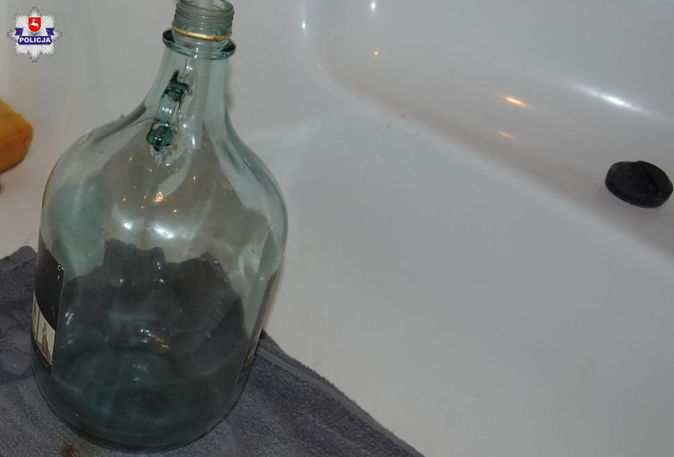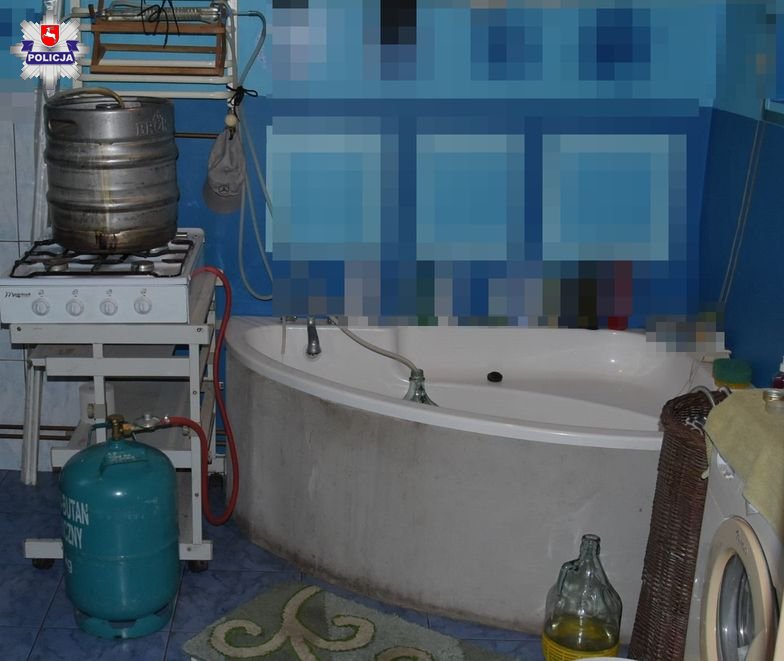 Wczoraj łukowscy policjanci dowiedzieli się, że mieszkaniec gminy Trzebieszów może nielegalnie produkować alkohol. Przeszukując dom 51-latka funkcjonariusze znaleźli w łazience uruchomioną domową „linię produkcyjną”. Produkowany alkohol zbierał się w stojącej w wannie butelce. Mężczyzna tłumaczył policjantom, że alkohol produkuje na własne potrzeby. Przeszukując mieszkanie mundurowi znaleźli 30 litrów wyprodukowanego przez 51-latka alkoholu. Dodatkowo znaleźli również beczkę z tzw. zacierem, który przygotowany już był do „procesu” produkcyjnego.