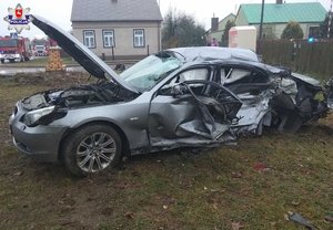 Pracujący na miejscu wypadku policjanci wstępnie ustalili, że kierujący samochodem bmw 28-latek, wyjeżdżając z drogi podporządkowanej na skrzyżowaniu nie ustąpił pierwszeństwa przejazdu samochodowi marki Daf, co doprowadziło do uderzenia ciężarówki w osobowe auto i przydrożne drzewa.