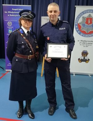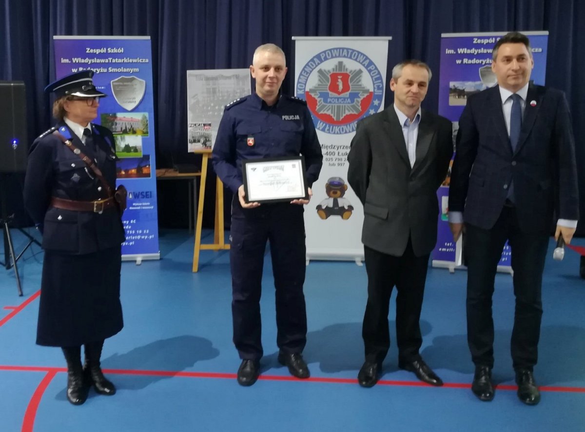 Na zakończenie warsztatów Prezes Stowarzyszenia „Rodzina Policyjna 1939 r.” na ręce Komendanta Powiatowego Policji w Łukowie nadkom. Leszka Misiaka przekazał Certyfikat Ambasadora OKM 1940, stanowiący o propagowaniu etosu Policji Państwowej.
