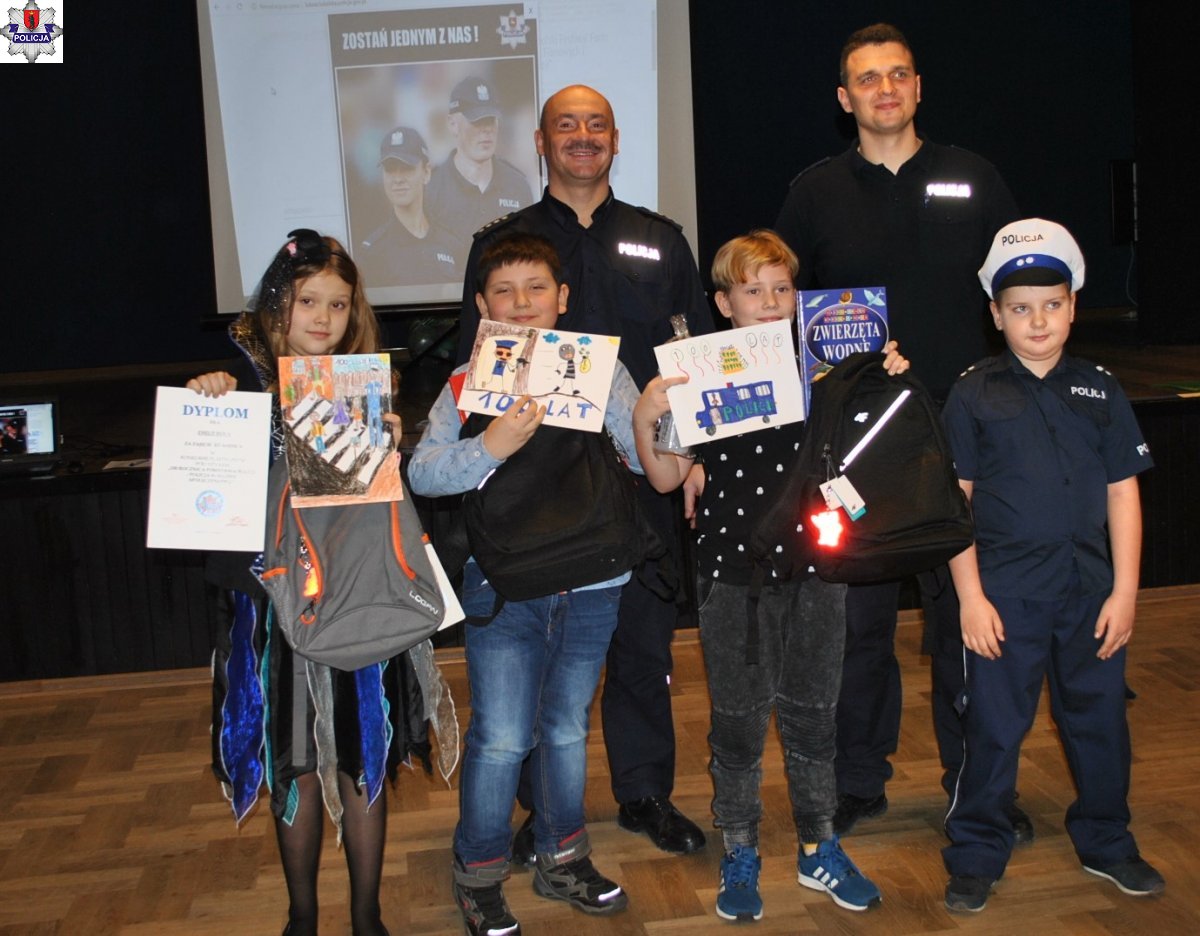 Kilkadziesiąt prac rysunkowych wykonały dzieci spędzające czas zimowych ferii w Łukowskim Ośrodku Kultury. Rysunki nawiązywały do codziennej pracy policjantów a także do obchodów 100 rocznicy powołania Policji Państwowej. Autorzy najlepszych prac otrzymali od mundurowych nagrody, a wszystkie dzieci dostały drobne upominki.