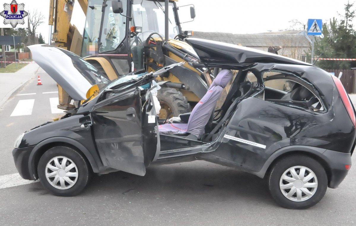 Wczoraj po godzinie 9:30 łukowscy policjanci zostali powiadomieni o zdarzeniu drogowym, do jakiego doszło w Bystrzycy na drodze wojewódzkiej nr 808. Ze zgłoszenia wynikało, że samochód marki Opel Corsa uderzył w koparkę i że uszkodzone elementy nadwozia osobówki „uwięziły” kierującą we wnętrzu auta.
