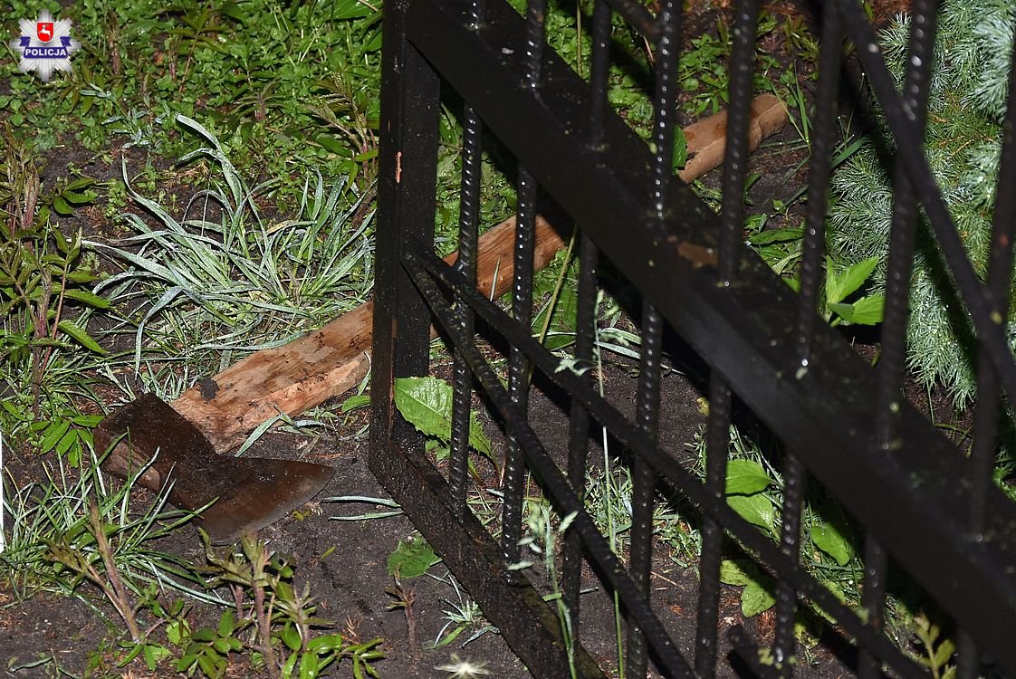 Po chwili zauważyli, że biegnie do nich młody mężczyzna trzymający siekierę. Młodzieniec wymachując tą siekierą krzyczał, że „zarąbie policjantów”. Mundurowi powiedzieli aby odrzucił niebezpieczne narzędzie, ostrzegli go że nie wykonując ich polecenia zmusi ich do użycia broni służbowej. 23-latek nie reagując na polecenie policjantów wymachiwał siekierą i w dalszym ciągu grożąc mundurowym biegł w ich kierunku. Wówczas jeden z mundurowych wykorzystując broń służbową oddał strzał ostrzegawczy w powietrze, dopiero wtedy 23-latek odrzucił siekierę i został obezwładniony przez funkcjonariuszy. Policjanci zatrzymali młodego mężczyznę i dowieźli go do jednostki. Ze wstępnych ustaleń wynika też, że nietrzeźwy młodzieniec najprawdopodobniej jeździł też samochodem marki Peugeot, w którym później wybił szyby. Nad ranem policjanci zostali powiadomieni przez sąsiada młodzieńca, że zbił on reflektor i uszkodził atrapę w jego ciężarówce. Teraz 23-latek trzeźwieje w policyjnej celi. Wkrótce usłyszy zarzuty.