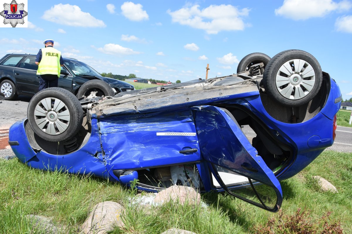 Wczoraj przed godziną 13:00 łukowscy policjanci zostali powiadomieni o zdarzeniu drogowym, do jakiego doszło w pobliżu Dminia na drodze krajowej nr 63. Mundurowi którzy dojechali na miejsce ustalili, że kierujący samochodem marki Skoda, 51-latek z gminy Łuków zderzył się z samochodem marki Audi, którym kierował 41-letni mieszkaniec tej samej gminy. Uderzona przez audi skoda „dachowała” na drodze. W wyniku zdarzenia pasażerka skody doznała obrażeń ciała i została przewieziona do szpitala. Na szczęście okazało się, że urazy jakich doznała kobieta nie były groźne, po udzieleniu pomocy medycznej została zwolniona do domu.