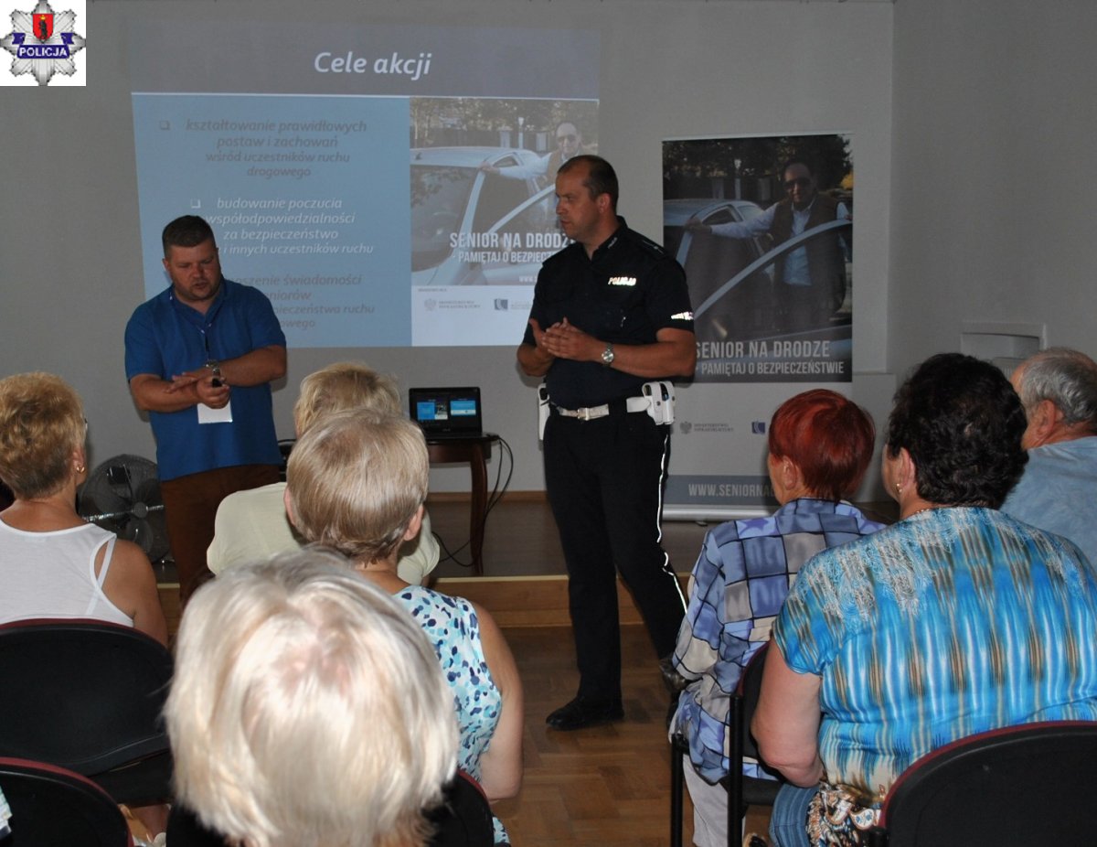 Łukowscy policjanci włączyli się w ogólnopolską akcję skierowaną do seniorów. Razem z ekspertem w Łukowskim Ośrodku Kultury uświadamiali kierowcom, rowerzystom i pieszym, jak zgodnie z zasadami prawidłowo i bezpiecznie poruszać się po drodze. Seniorzy dowiedzieli się między innymi o różnych niebezpiecznych sytuacjach na drodze.