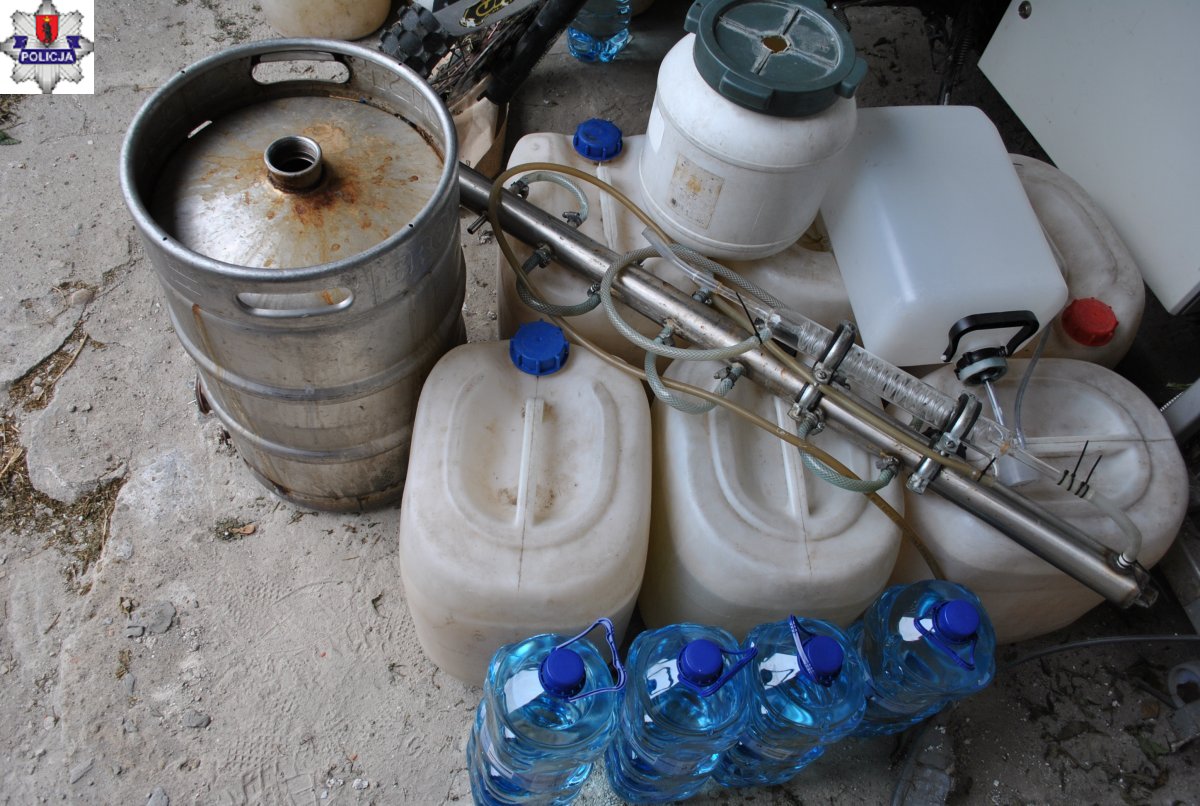 Aparaturę do domowej produkcji alkoholu etylowego, ponad 20 litrów gotowego alkoholu i 400 litrów „zacieru” zabezpieczyli policjanci w jednym z domów w gminie Łuków. Funkcjonariusze weszli do mieszkania, gdy 48-latek „produkował” nielegalny trunek w przedsionku. Teraz mężczyźnie grozi wysoka grzywna a nawet kara pozbawienia wolności.