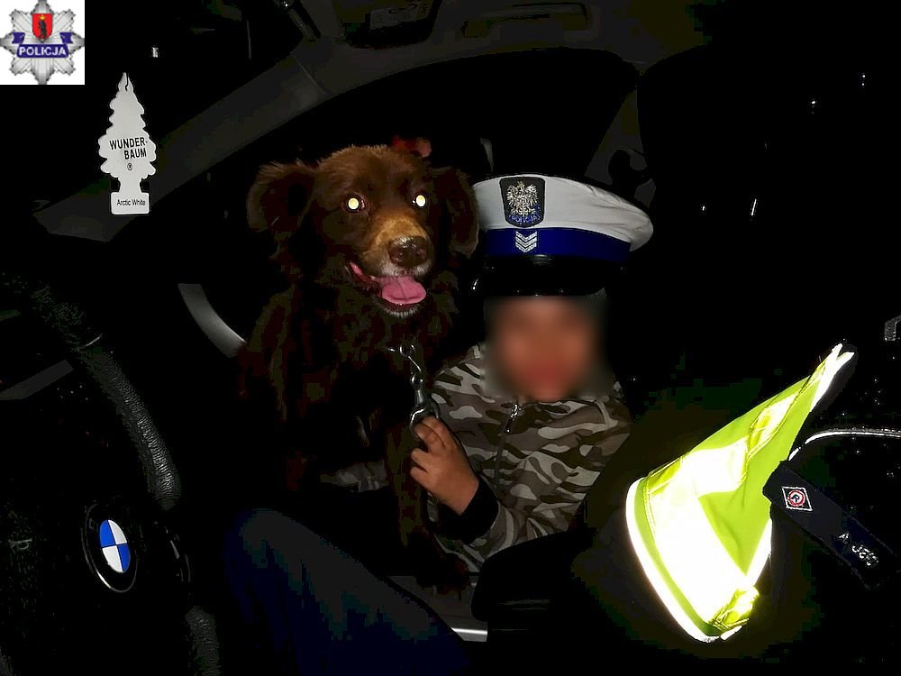 Chłopczyk powiedział policjantom jak się nazywa. Był to poszukiwany 8-latek. Chłopiec razem ze swoim pieskiem usiadł do radiowozu i mówił, że nic mu się nie stało. 8-latek opowiadał, że razem z kolegą i swym pieskiem bawili się na dworze, a potem gdy zrobiło się ciemno nie wiedział jak trafić do domu. Oczekując w radiowozie na rodziców 8-latek przymierzał policyjną czapkę, i oglądał wyposażenie radiowozu. Po kilku minutach szczęśliwi rodzice „odebrali swoją zgubę” i pieska. Dziękowali przy tym policjantom i wszystkim zaangażowanym w poszukiwania ich synka.
